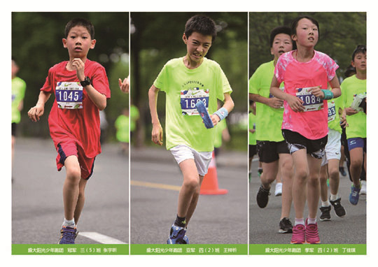 2018年6月3日,上海国际马拉松少年跑在黄浦江畔隆重举行。7点30分,110米跨栏奥运冠军刘翔为开跑鸣枪发令。今年的少儿跑设置4.2公里,相当于国际马拉松的十分之一跑程。参赛规模达4000人,年龄在9到12岁的“小朋友”。另外,还有1000名5到8岁的3公里亲子跑的小跑者们。我们盛大阳光少年跑团的成员大部分是第一次参加马拉松,4.2公里这个数字给了大家不小的压力,兴奋伴随着紧张但却个个精神抖擞跃跃欲试。大家在赛前互相鼓劲,以前跑过马拉松的同学还给大家传授自己的经验。值得骄傲的是,盛大阳光少年跑团一行20人,无一人弃赛,哪怕途中摔倒受伤,哪怕体力严重透支,大家都坚持跑完全程。我为我们坚持到底的精神喝彩!其中三年级5班的张宇昕同学以21分25秒的成绩,荣获盛大跑团冠军;荣获盛大跑团亚军和季军的同学分别是:四年级2班王梓圻同学24分35秒和四年级2班丁佳琪同学24分51秒。