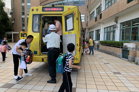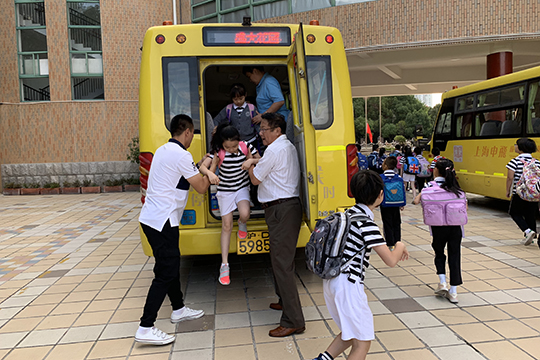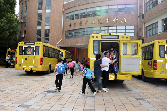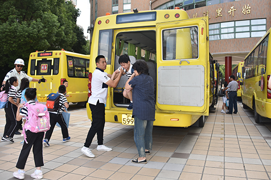 中秋小长假后的第一天,一辆辆校车缓缓驶入校园,校门口的保安、办公室主任王锦国老师、值日护导汪老师等,早早地等在校门口,准备进行本学期的第一次校车安全疏散演练。