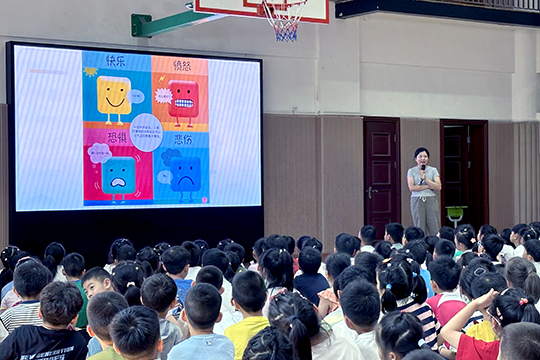 讲座一开始,王医生通过色彩鲜明的图片和小情境,向同学们介绍了快乐、悲伤、恐惧、愤怒四种基本情绪。她告诉大家:“情绪没有好坏之分,它们都是我们内心的自然反应。”快乐让我们充满活力,悲伤让别人知道我们需要帮助,愤怒让我们学会保护自己,恐惧提醒我们远离危险。