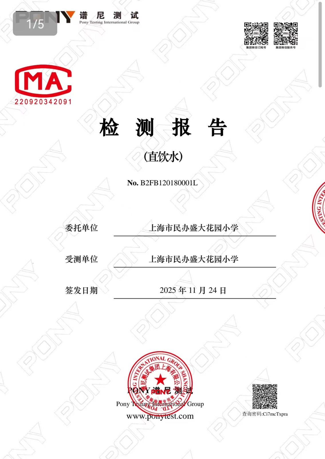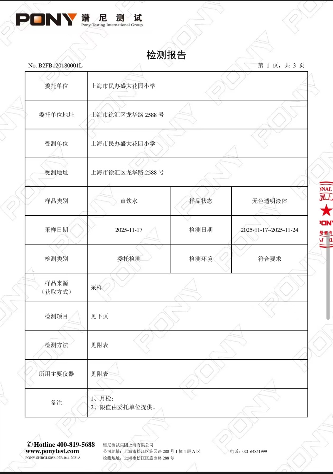 2025年11月直饮水检测报告 - 内容 - 盛大花园小学