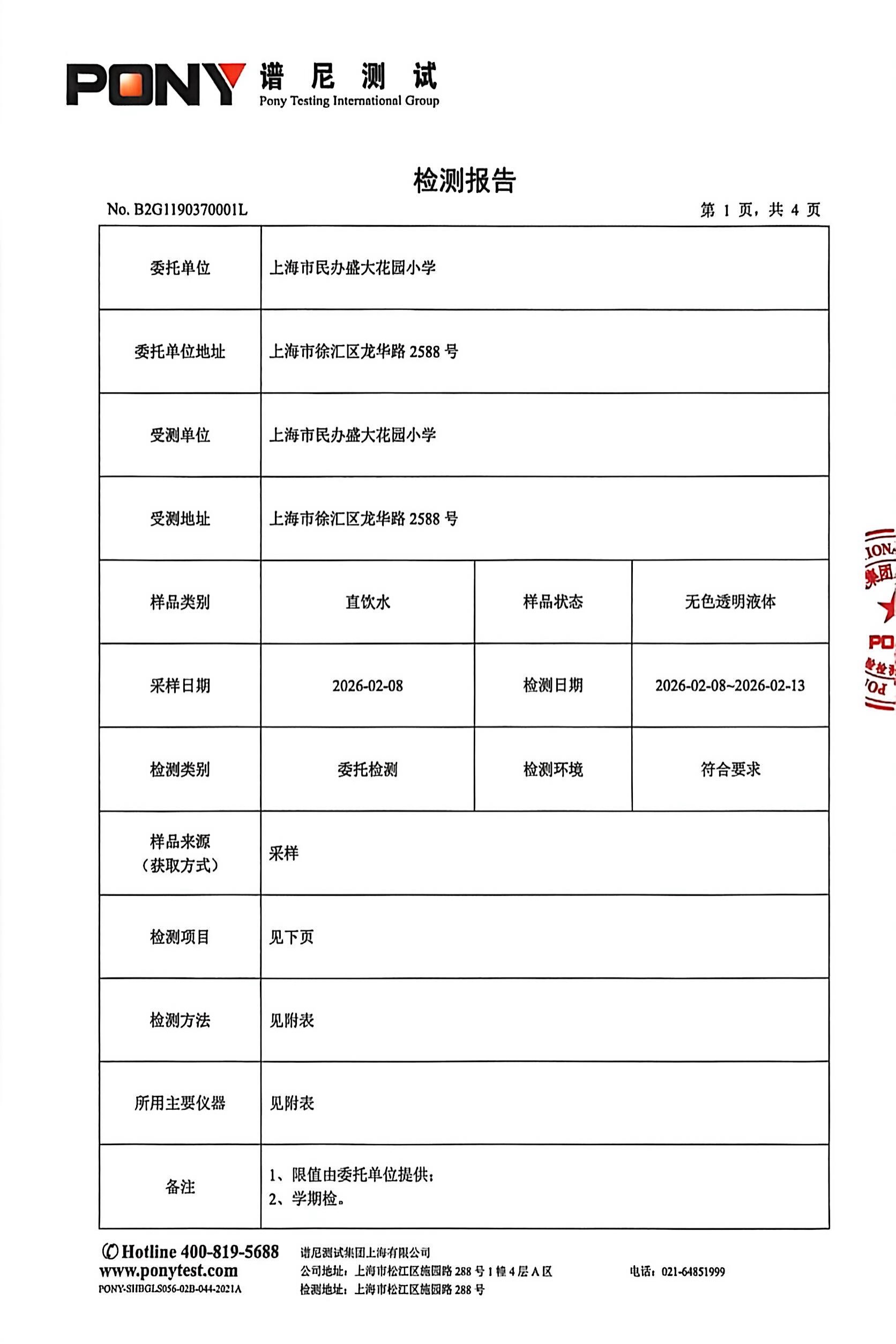 2026年2月直饮水检测报告 - 内容 - 盛大花园小学