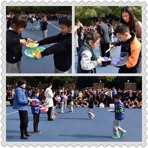 本次科技节针对学生的年龄特点,分低、中、高三个学段来进行各项比赛。一、二年级的科技活动是“鸟类运食”,让学生分别用木质扁夹、金属夹夹取乒乓球模拟鸟喙夹送食物,为三年级关于鸟类相关知识的学习做好铺垫。瞧,低年级小朋友的神情是多么认真,夹球的同学争取多夹几个;运球的同学小心翼翼地运送,生怕把乒乓球给弄掉了。五人小组同心协力,竭尽全力把所有小球都送入指定篮筐里。