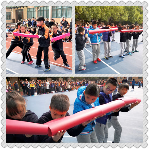 三、四年级进行了“隧道运球”的比赛。每班选出5名学生,每位同学拿一个用卡纸制成的纸筒,头尾相连成一条“通道”,听口令从通道一端放入圆球,让球从隧道一端滚到指定位置,5位学生首尾相接,依次轮转。四年级的学生还要防止小球从敞开的纸槽中掉落。这个比赛旨在让学生动手体验有些物体的运动需要平衡,引导学生注重在活动中的合作与协调,培养学生不怕失败,坚持不懈的竞争理念。哇,中年级同学们明显能力强多了,他们全神贯注地看着小球的“动向”,一个个敏捷地调整卡纸的高低并迅速接住小球,让它以最快的速度进入到指定篮筐里。