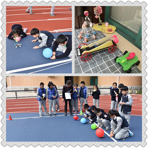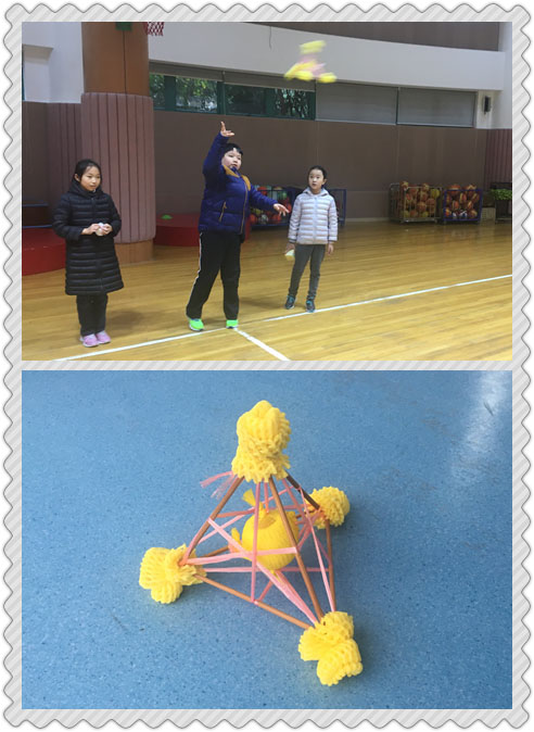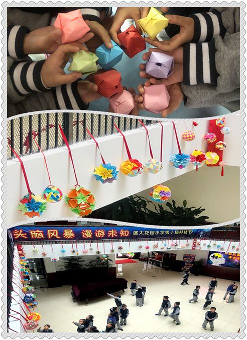 在这一个月里,各年级还开展了课内外的科技活动。一年级的缤纷小球,在课内学会折纸球的基础上做出更多花式纸球。二年级的创意组合,利用环保纸做出各种形状拼搭出动物、建筑等搭建制作。三年级的勇往直前,看看不限材料的气球小车能跑出多远?四年级的炫彩陀螺,利用再生纸盘和光盘等材料制作一个陀螺,旋转时间越久越好。五年级的安全着陆,设计制作一个保护鸡蛋的装置,抛掷后还能让鸡蛋完好无损吗?同学们动手动脑,课内外完成制作后,利用课内、午间等时间活动、比赛,操场上、篮球馆内、教学楼走廊……整个盛大校园内掀起一阵阵科技风暴!