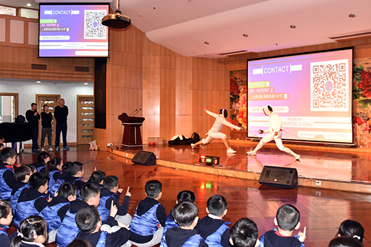 本周,曾执教过中国女子重剑队,来自法国的乐瓦瓦瑟教练来我校为一到四年级的学生们普及了击剑运动。