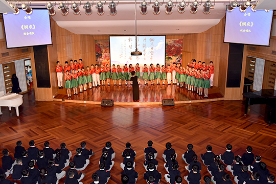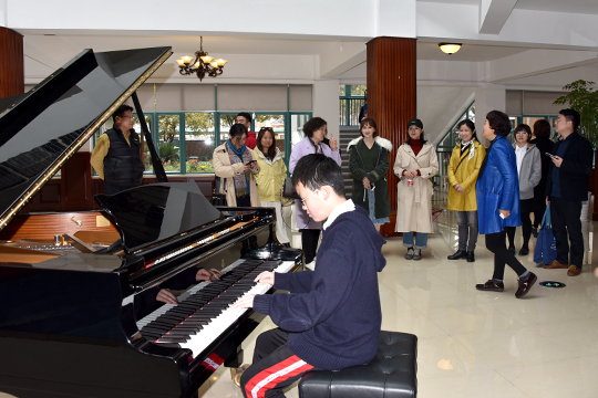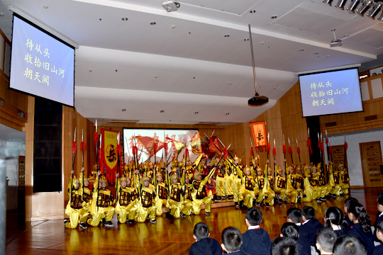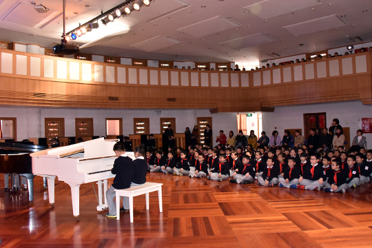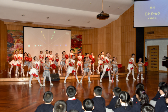 之后,杭州外国语小学的领导们和老师们来到三楼演奏厅观看了同学们的演出。无论是钢琴四手联弹的灵动,还是舞蹈队合唱队的专业,抑或是五年级学生气势磅礴的古诗词表演——《满江红》都让客人们忍不住频频点头,纷纷说学到了不少。